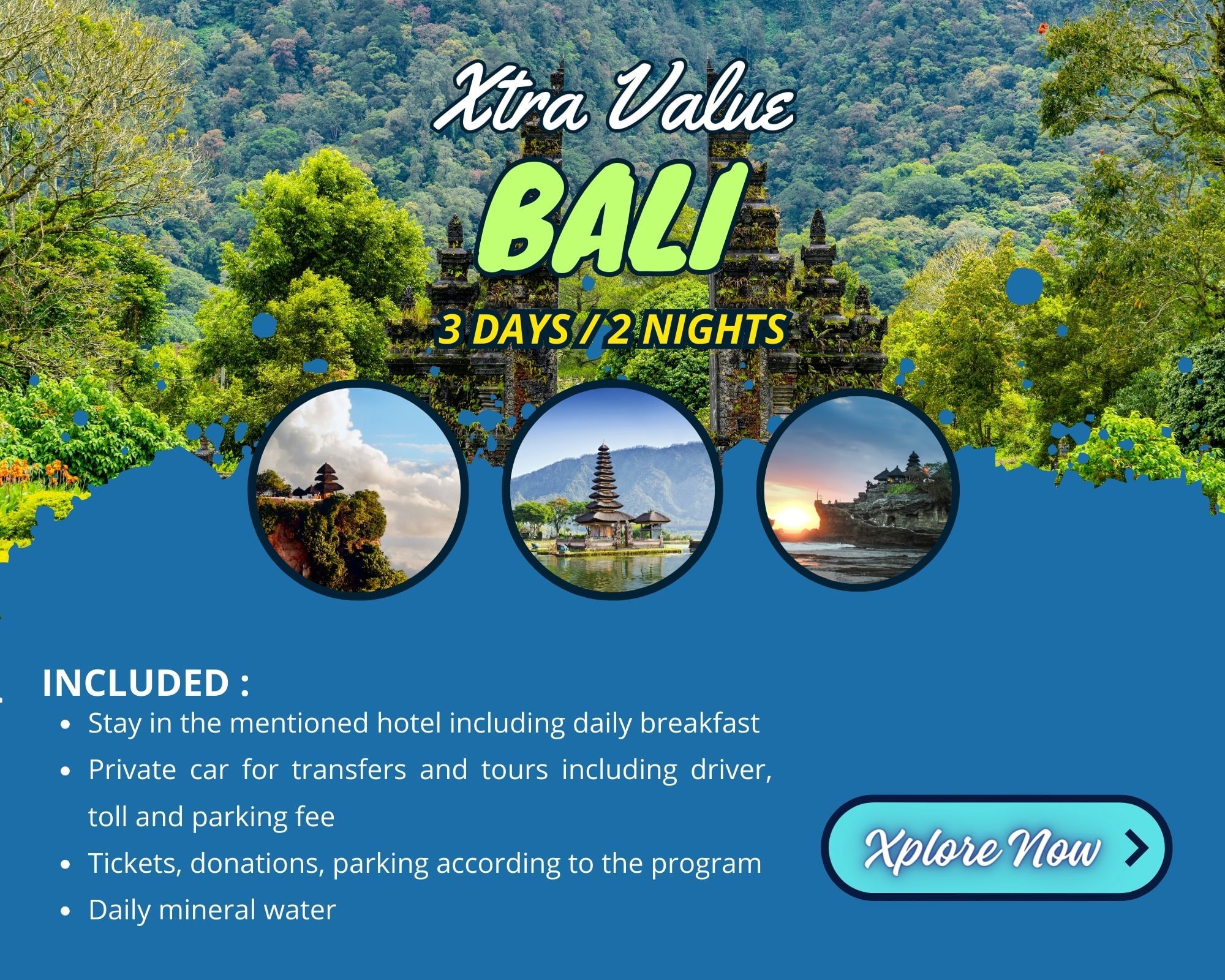 Only USD 36 per person/per day! Embark on a 3-day, 2-night adventure with our Xtra Value Bali package