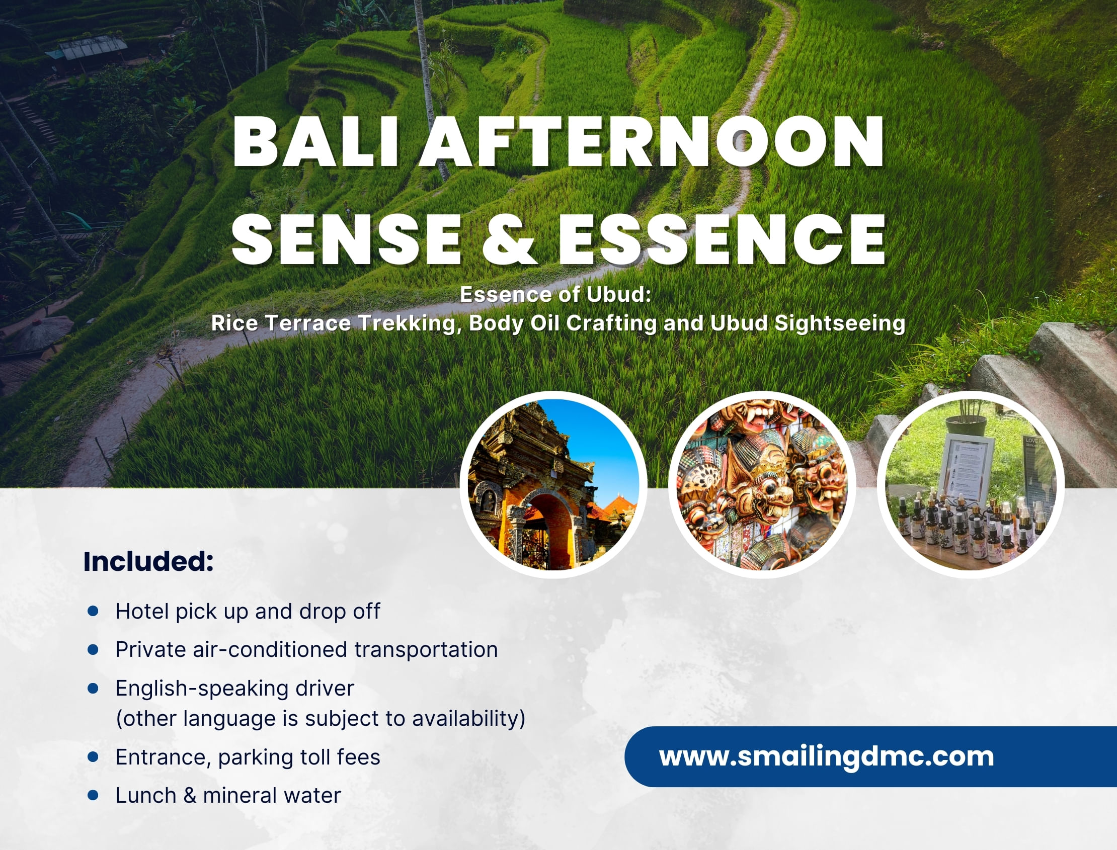 Experience a day of relaxation and creativity in Ubud, from lush landscapes to a hands-on Body Oil Workshop. Explore local culture and leave with unforgettable memories of Bali’s beauty and charm.