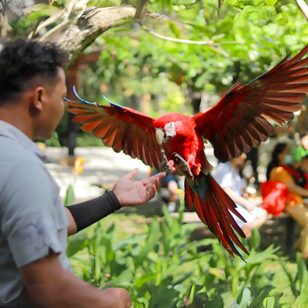 Bali Bird Park showcases over 1000 exotic birds in lush surroundings, offering educational and immersive experiences for visitors.